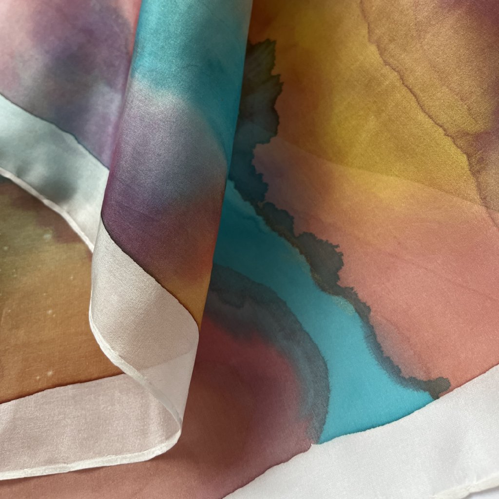 Tento hedvábný šátek je inspirovaný přírodou a jejími barvami.